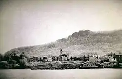 An early photograph from across the Hudson River looking toward the Village of Haverstraw and the High Tor and Little Tor peaks.