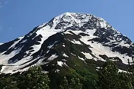 Highbush Peak is a 4,669-foot (1,423 m) elevation mountain summit located in the Chugach Mountains, in Anchorage Municipality in the U.S. state of Alaska. The peak is situated in Chugach National Forest, between the Glacier Creek and Twentymile River valleys, 36 mi (58 km) southeast of downtown Anchorage, and 5 mi (8 km) east of the Alyeska Resort and Girdwood area. Precipitation runoff from the peak drains into Turnagain Arm. This mountain's unofficial name refers to the highbush cranberry. Other berry-theme peaks nearby include Lowbush Peak, Lingon Mountain, Nagoon Mountain, Blueberry Hill, and Bearberry Point.[1]