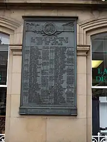 The line between Keith to Highland's Buckie station closed in 1915 and only goods traffic used the line from Buckie to Portessie.[95] Locomotive repairs fell behind because of the excessive demands and many of the engine fitters had been called up for war service. Twenty locomotives were loaned from other railways; efforts to get engine fitters failed. 756 of the 3000 Highland Railway staff served active service and a memorial to 87 that died was placed in Station Square at Inverness.[96] The railways were in a poor state after the war, costs having increased, with higher wages, the introduction of an eight-hour day and the price of coal having risen. A scheme was devised whereby the railways would be grouped into four large companies; this was approved by Parliament as the Railways Act 1921.[97]