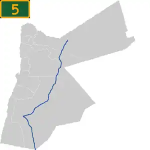 Highway 5 is the easternmost north–south highway in Jordan. It starts at Safawi, from Iraq Highway in the north and ends at the Saudi Arabian border at Mudawwara in the south.