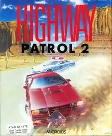 Highway Patrol 2 (shown on the title screen as Highway Patrol II) is a racing video game published by Microïds in 1991 for Atari ST, Amiga, and MS-DOS compatible operating systems. The player is a police officer trying to capture criminals before they reach the border of the state. The game begins with choosing a target, each one with different rewards: the tougher the criminal, the higher the reward will be. The game is played in a first-person view, with a map and a compass to help in locating the criminal. To arrest him, players may choose to use the soft way (siren), or the hard way (shotgun).