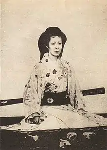 Beginning in the Edo period (1603–1867), both hikimayu and ohaguro transitioned into a practice seen only on married women.[3] In the latter half of the 19th century, the Japanese government ended its policy of isolationism and started to adopt Western culture. Eyebrows painted on the forehead and blackened teeth were considered no longer appropriate for modern society, and in 1870 hikimayu and ohaguro were banned.[3]