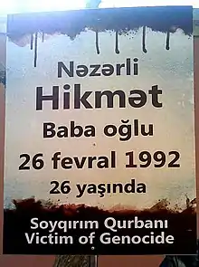 Hikmet Baba oglu Nazarli (Azerbaijani: Hikmət Nəzərli) (7 March 1966, Baku, Azerbaijan SSR - 26 February 1992, Khojaly, Azerbaijan) was a National Hero of Azerbaijan and warrior during the First Nagorno-Karabakh War.[1]