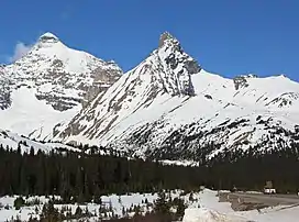 ![]() Hilda Peak (center) with Mount Athabasca (left) | |
