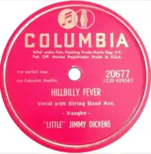 "Hillbilly Fever" is a country music song written by Vaughn Horton, sung by Little Jimmy Dickens, and released on the Columbia label. It was recorded on February 14, 1950.[1] The lyrics reflect the growing popularity of country music in the postwar years, as "hillbilly fever's going round".[2]