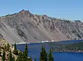Hillman Peak is an 8,151 feet (2,484 m) summit on the west rim of Crater Lake in Crater Lake National Park, Oregon.[3] It is the highest peak on the caldera rim and ranks as the second-highest peak in the park.[4] It is situated 1.5 mile northwest of Wizard Island. Topographic relief is significant as the summit rises 1,973 feet above the lake in 0.57 mile. Rim Drive traverses the western slope of the peak. Precipitation runoff from the peak's east slope drains into Crater Lake whereas the west slope drains to the Rogue River via Copeland Creek.