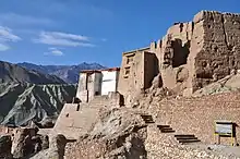Basgo Monastery is a mud-brick fortress. The monastery was built in the 16th century by the Namgyal dynasty. The monastery holds a 14-meter-high, gilded statue of the Maitreya Buddha.