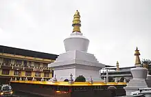 The religious structures[3] of Vajrayana Buddhism in the Himalayan belt are seen as Monasteries, Lhakhangs/ Gomphas and Chortens. In Mahayana Buddhism they are known as Chaityas, Viharas and Stupas, respectively.