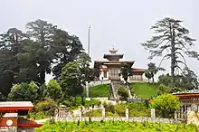 Bhutan. It is surrounded by 108 chorten walls. The complex houses three revered temples, namely: Guru Lhakhang, Sampa Lhundrup Lhakhang and Ka Gon Phor Sum Lhakhang. |