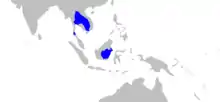 Geographic range (excludes populations not confirmed as extant and/or conspecific)[1]
