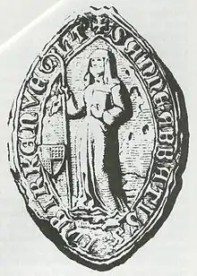 | 9 | Longa von Kotzau | 1411–1428 | According to the genealogist Alban von Dobeneck, Longa came from a branch von Kotzau family, which was propertied in Rehau and Leimitz and was founded by her father Goßwein. Another abbess of the family was Katharina von Kotzau in the nearby Clarissan Hof Abbey. | ![]() |