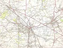 Hinckley railway station[32] is on the Nuneaton to Leicester[33] section of the Birmingham to Peterborough Line and has regular services between Birmingham and Leicester via Narborough and Nuneaton. Journeys to London can be made via the West Coast Main Line through Nuneaton to London Euston or the Midland Main Line via Leicester to London St Pancras.