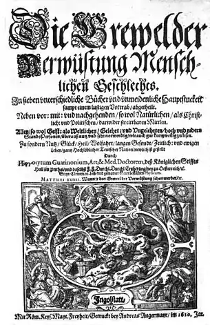 - ↑ Die Grewel der Verwüstung menschlichen Geschlechts. Angermayr, Ingolstadt (1610 version) and Bayerische Staatsbibliothek, München (digital version). Archived from the original on July 31, 2017.