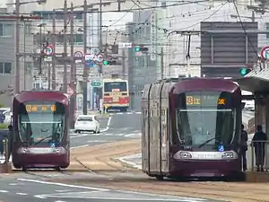 - ↑ "Hiroden Yokogawa Station Timetable" (PDF). Retrieved 25 June 2017.