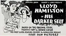 His Darker Self is a 1924 American silent blackface comedy film directed by John W. Noble and starring Lloyd Hamilton, Tom Wilson, and Sally Long.[1] The plot involves a self-taught small town detective who, after a Black friend is killed, goes undercover in blackface.