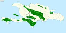 It is found on the island of Hispaniola, (Dominican Republic and Haiti).[11] Its natural habitats are subtropical or tropical dry forest, subtropical or tropical moist lowland forest, and heavily degraded former forest.