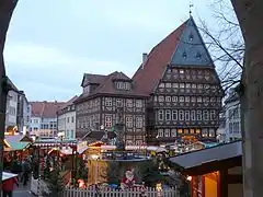 - The Wedekindhaus (Wedekind House), a patrician house dating from 1598, is characterized by its high, ornately carved storeys including their ledges with depictions of allegorical figures. The building has been the headquarters of the Municipal Savings Bank since the 1950s. It was the first half-timbered house of the Market Place to be reconstructed. The inauguration was on 23 March 1986.