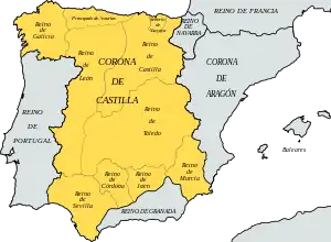 - ↑ These kingdoms were in force, within the framework of Spain, until the provincial division carried out by Javier de Burgos in 1833.