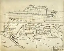 In the 17th century Bauska was the third-largest city of the Duchy of Courland. It had a regular block layout consisting of two main streets parallel to Mēmele, a market square with a town hall, two Lutheran churches and one-story wooden buildings. It had city-made sidewalks and a night watch.
