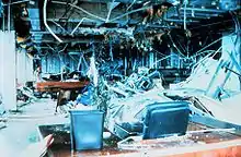 In 1992, Hurricane Andrew destroyed the company headquarters. The building, located on Old Cutler Rd. in Miami, was right in the center of the path of the hurricane. Located on the shoreline at the terminus of 184th St. (Eureka Drive), the highest storm surge levels was recorded (16.9 ft) at the site.[43] The building suffered more than $24 million in damage and pushed the company from its offices during one of its more significant product pushes.[44][45] Not only was the company forced from its facilities, roughly 300 members of its 700+ staff were left homeless.[44][45] Immediately after the storm, Gibbons began a program to help get the company back on track. The company's recovery was helped due to pre-planning before the storm's landfall; Corporate backoffice data was moved to Seattle, Washington before the storm struck in order to safeguard critical records,[46] and the company established a temporary "command center" at the Doral Resort and Country Club in Miami within eight days of the hurricanes passing.[45] Additional operations were temporarily decentralized by temporarily shifting some corporate functions to regional offices.[45] The facility would eventually take more than a year to rebuild, finally opening in September 1993.[47]