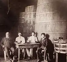 The virgin land proved fertile, and soon provided good harvests of potatoes, beans, cassava, peanuts, pumpkins, tomatoes, peppers, wheat, and corn, and with the raising of pig, chicken, and cattle. The tropeiros, with their caravans contributed to trade, as did the Germans from São Sebastião do Caí, who had already developed an efficient network of warehouses, facilitating the flow of the first agricultural products such as honey, wine, grappa, sausages, lard, flour, and cheese, and the exchange for other goods, thus stimulating incipient industrialization.[14][15] The result of this activity could be seen in 1881 with the first Agro-Industrial Fair, the origin of the modern Festa da Uva, which was installed in the building of the Land Commission Board, bringing together in one main event the various festivities commemorating the harvests held sparsely by the settlers.[16]