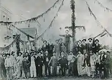From 1931 on, this festivity was the biggest profane event in the city, loaded with strong symbolism. The feast originated from the various festivities commemorating the grape harvests and the agro-industrial fairs that the settlers held in small groups in their ravines. In 1931, these scattered festivities were brought together in a large municipal celebration, which received the name that lasts until today. Besides the direct trade of the products displayed in the big showcase that was the party (in the contact between the producers and other interested parties), there was the exchange of experiences and technical information to improve the conditions of cultivation and processing of the grape.[83] As noted by an observer of the press, "numerous were the visitors who with a pencil in hand in front of the varieties (of grapes) that were of interest took note of their characters and their names, to introduce them in their plantations, to improve their vineyard."[84]