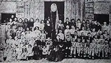 In the difficult work of founding a new city in an inhospitable environment, formal education had little space and was basically aimed at elementary instruction, without greater pretensions, and as long as the courses did not interfere with work – the priority for everyone. Approximately 80% of the new arrivals were illiterate,[34] but after about two decades the illiteracy rate had fallen to around 30% for men and 70% for women.[35] Even with the initial lack of teachers and schools, a simple educational system was organized as early as 1875, the year the first immigrants arrived, and taught by some of the most educated. Generally, the classes were given in spacious houses, and later in simple schools built for this purpose. Among the first educators whose names are notable were Giacomo Paternoster, the first active professional teacher in the city, Luíza Morelli Marchioro, the Maestra. She became famous in the region, teaching informally in her residence on the 7th Légua since before 1877, when she was hired by the provincial government. Abramo Pezzi also left a notable mark in the early history of education in the Caxias do Sul.[36][37]