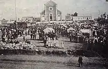 Shortly afterward, on 30 June 1894, the Federalist Revolution reached Caxias do Sul and left a trail of destruction. The city was invaded by 400 revolutionaries commanded by Belisário Baptista de Almeida Soares, who looted the commerce and attacked public buildings, forcing the population to take refuge in the countryside.[22] The local presence of Freemasons and Carbonari also caused riots and violence especially against the religious, setting traps for them, assaults, and assassination attempts, thus dividing the community and forcing some of the first priests to carry guns or move to other places. Antonio Passaggi, the first chaplain of the colony, was on one occasion the victim of a trap, when anticlerical individuals arranged a fake wedding between two men, one of them in drag. When the plot was discovered, the priest was punished, stripped of his functions, and deprived of holy orders by the bishop, while the real culprits remained free. In 1898, Father Pietro Nosadini, who had already been kidnapped and almost killed in 1897, wrote an open letter to the government denouncing the slander that involved him in the attempt on the life of the Intendant José Cândido de Campos Júnior, and other facts revealing the climate of intrigue, animosity, and incomprehension that reigned between the church and local politicians. Peace was only established when Father Antonio Pertile took over the direction of the parish, whose tombstone bears the title Pacificatore di Caxias.[23][24] These various conflicts, besides their specific and punctual characteristics, were also a reflection of the intense struggle for power at the state level, where currents of republicans and federalists fought, each subdivided by influences of divergent ideologies of conservatives, liberals, Catholics, Freemasons, and other interest groups, making the state one of the most unstable areas in Brazil at this time, and making the passage from the 19th to the 20th century the most turbulent period in Caxias' history.[25]