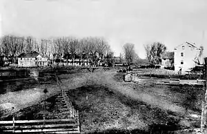 Chico was founded by General John Bidwell, a member of one of the first wagon trains to reach California in 1843. Bidwell first came to the area in that same year as an employee of John Sutter. In 1844, William Dickey was granted Rancho Arroyo Chico by Mexican Governor Manuel Micheltorena. In two separate purchases in 1849 and 1851, Bidwell acquired the Rancho Arroyo Chico. He filed a claim for the land with the Public Land Commission in 1852, and the claim was confirmed the next year. After a subsequent legal challenge, the claim was confirmed by the US District Court for the Northern District in 1855, and eventually by the US Supreme Court. The title patent was signed by President James Buchanan in 1860.