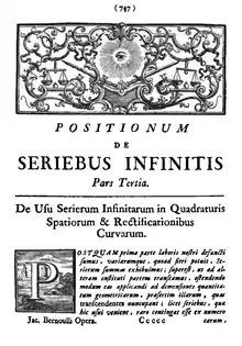 (November 1983). "Euler and Infinite Series". Mathematics Magazine. 56 (5): 307–314. CiteSeerX 10.1.1.639.6923. doi:10.2307/2690371. JSTOR 2690371.{{cite journal}}: CS1 maint: multiple names: authors list (link)- Knobloch, Eberhard (2006). "Beyond Cartesian limits: Leibniz's passage from algebraic to "transcendental" mathematics". Historia Mathematica. 33: 113–131. doi:10.1016/j.hm.2004.02.001.