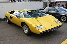In 1970, Lamborghini began development of a replacement for the Miura, which was a pioneering model, but had interior noise levels that Ferruccio Lamborghini found unacceptable and nonconforming to his brand philosophy.[24] Engineers designed a new, longer chassis that placed the engine longitudinally, further away from the driver's seat. Designated the LP 500 for its 4.97-litre version of the company's V12, the prototype's body was styled by Marcello Gandini at Bertone. The car was presented at the 1971 Geneva Motor Show, alongside the final revision of the Miura, the P400 SuperVeloce. Completing the Lamborghini range were the Espada 2, the Urraco P250, and the Jarama GT.[25]