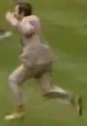 Under Pleat, the club had developed a cavalier and attacking style of play, which was evident during 1982–1983 as Luton finished with the second highest tally of away goals, only one less than champions Liverpool.[20] On the last day of the season, Luton needed all three points against relegation rivals Manchester City at Maine Road to stay in the division. City, needing only a point to avoid the drop, defended resolutely and few chances came to Luton – but with only seven minutes remaining, substitute Raddy Antić slammed home the winner to secure Luton's top flight status and prompt a manic and now infamous jig across the pitch from Pleat.[21] The next two seasons saw Luton consolidate as the club finished first 16th,[22] then 13th in 1984–1985 as they also reached the FA Cup semi-finals.[23] Player sales continued as skilful forward Paul Walsh, the PFA Young Player of the Year,[24] was sold to Liverpool in the summer of 1984.[25]