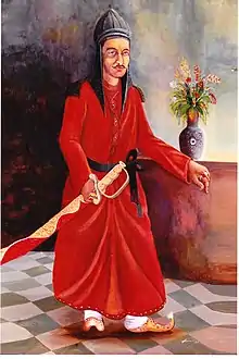 During the reign of Mughal emperor Muhammad Shah, a Muslim missionary from Iran known as Pir Mian Ambar Shah, also known as Umar Shah, arrived in the region by boat.[24] To facilitate his settlement and propagation, the emperor had a copperplate made designating Bajra as a tax-free settlement for him.[25] The word Bajra means large boat, being a corruption of bara-nauka, taking its name from Umar Shah's boat where the Pir initially lived in and preached to the locals.[26] Umar Shah also raised Amanullah and Thanaullah, the two sons of a local widow from Chhangaon. It was under Umar Shah's instructions that Amanullah established the Bajra Shahi Mosque and Thanaullah dug the 30-acre reservoir in front of the mosque. Construction began in 1715 CE and it was completed in 1741.[27] Another wali who migrated to the region to spread Islam was Pir Mir Ahmad Khandakar who settled in Babupur.[3]