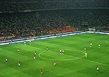 On 24 January 2007, Tommaso Ghirardi was announced as new owner of Parma FC following a public auction sale following a failed bid from ex-Real Madrid director Lorenzo Sanz the previous year, which failed to meet the then-asking price of €27m.[27][28] Ghirardi, a 31-year-old entrepreneur and owner of Serie C2 club AC Carpenedolo, also became president of Parma F.C., ending three years of state-controlled management. Having qualifying for the Round of 32 of the 2006–07 UEFA Cup, Parma were eliminated from the competition by S.C. Braga, who prevailed by a single goal to nil in both legs; the home match was played behind closed doors after the Italian Government ruled that Parma's stadium did not meet requirements set out following recent riots in a league match in Sicily. On 12 February, second-last placed Parma fired head coach Pioli and replaced him with Claudio Ranieri who, against overwhelming odds, managed to avoid relegation to Serie B on the final day of the season, before leaving at the end of the season.[29][30] In the 2007–08 season, Parma again battled with relegation. Three different head coaches (Domenico Di Carlo,[31] Héctor Cúper, and caretaker Andrea Manzo) took charge that season, but none were able to preserve Parma's Serie A status, as they lost 2–0 at home to champions Internazionale on the final day of the season, Zlatan Ibrahimović eventually sealing their fate and consigning them to Serie B football after eighteen years in the top flight.