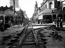 On 28 September 1899, the first electric tram services commenced, operated by Perth Electric Tramways Ltd, with services from East Perth along Hay Street to Milligan Street.[13] The Perth Mint, on Hay Street in East Perth, opened the same year.[16]