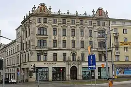 Among projects financed by Poles in Poznań, the Raczyński Library, financed by Edward Raczyński, was completed in 1828.[5] German poet Heinrich Heine was most impressed when he visited the site of the library's construction in August 1822, though Edward Raczyński, in fear of rejection, could not disclose to the Prussian authorities he intended to house a Polish public library there until February 1829, when he sent the Prussian king the statute of its foundation and organization[6] and on 24 January 1830 Frederick William III of Prussia did approve it. After the death of the library's founder and then his son, Roger the Prussian authorities made effort to Germanize the Raczyński Library, but these efforts were not fully successful.[7] An important centre of Polish culture in Poznań would be the Bazar hotel on Wilhelms Strasse, built in 1841 by a company set up by Karol Marcinkowski and other Poles. Also in 1841 Marcinkowski and Maciej Mielzynski founded the Towarzystwo Naukowej Pomocy dla Młodzieży Wielkiego Księstwa Poznańskiego ("Scientific Help Society for the Youth of the Grand Duchy of Poznań"), which provided academic scholarships for poor Poles. Raczyński also funded the city's first system of water supply pipes (built of wood, from 1840). Hipolit Cegielski set up his first metal goods shop in the Bazar hotel building in 1846 – the Cegielski company would develop into one of Poznań's largest industrial concerns (since 1919 occupying plants south of Wilda district).