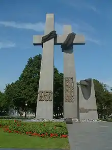 Some 100,000 inhabitants were expelled to the General Government in the more-eastern part of German-occupied Poland. The aim of German policy was gradual extermination of Polish and Jewish population in the region, with the victims of German campaign estimated at 460,000.[20] Many others were sent to Germany as forced labour or conscripted into the German army. Poznań was the seat the German Central Bureau for Resettlement (UWZ, Umwandererzentralstelle), a special German institution established in November 1939 to coordinate the expulsion of Poles from occupied Polish territories.[21] Poznań's Jewish population, which had numbered 2,000 in 1939,[22] was largely murdered in the Holocaust. Property belonging to expelled or murdered Poles and Jews was often given to Volksdeutsche resettled from Baltic States, Eastern Europe and central Germany. Figures for 1944 show 94,000 Germans living in Poznań.