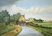 - ↑ This is a reference to the New River, then in a wooden viaduct at this point. See: New River.