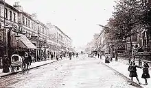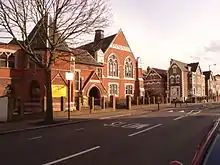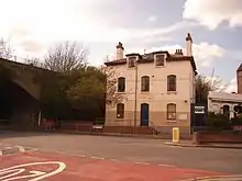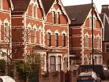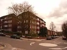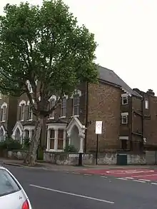 While strictly speaking not properly part of Stroud Green, Womersely House, close by the St Peter-in-Chains catholic church, has already been noted as home to the Turner family, prominent local landowners in the late 19th century, who had previously occupied Stapleton Hall. By the early 20th century however it was a hostel for single working women.[45] It occupied a plot of land bordered by Elm Grove and Womersley Road, and had been demolished by 1947 as can be seen on various RAF aerial survey photos on the Historic England website.[29] The site is currently (March 2008) being re-developed.
