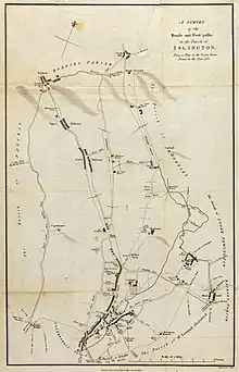 - ↑ See pp. 6-7 of Stokes, Malcolm (2002) 'The Parish Boundary Between Hornsey and Islington' in Bulletin of the Hornsey Historical Society No 43. ISSN 0955-8071. pp. 2-8.