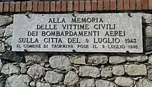 A plaque memorial to the people who lost their lives in the raids is located in the square outside Porta Catania.