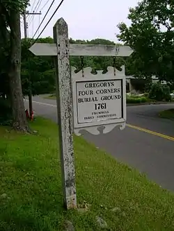 Gregory's Four Corners Burial Ground is a historic cemetery just over the Monroe town line. It was established in 1761. It is most famous for being the final resting place of Hannah Cranna, often called the "Wicked Witch of Monroe".