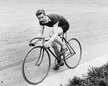 The first documented cycling race was a 1,200 metre race held on May 31, 1868, at the Park of Saint-Cloud, Paris. It was won by expatriate Englishman James Moore who rode a bicycle with solid rubber tires.[3] The first cycle race covering a distance between two cities was Paris–Rouen, also won by James Moore, who rode the 123 kilometres dividing both cities in 10 hours and 40 minutes.[4]