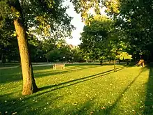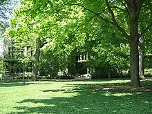 The University of Chicago's Hyde Park campus began in 1890 through the efforts of the American Baptist Education Society and oil magnate John D. Rockefeller, who later called it "the best investment I ever made."[2] The University of Chicago held its first classes there on October 1, 1892.[3] The original tract of land, comprising the current main quads, was donated by Marshall Field, owner of the Marshall Field and Company department store. Other rich Chicagoans donated cash to match Rockefeller's offer. Martin A. Ryerson (1856–1932) served as the president of the board of trustees of the University from 1892 to 1922. He donated over $2 million to the university, including $350,000 for the construction of the Ryerson Physical Laboratory and he endowed the Martin A. Ryerson Distinguished Service Professorship in 1925.[4]