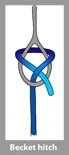 | Becket hitch | Any hitch that is made on an eye loop, i.e., on a becket. | ![]() |