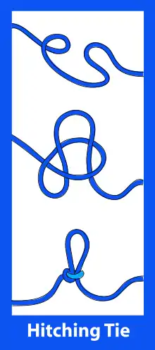 | Hitching tie | A simple knot used to tie off stuff sacks that allows quick access as it unties quickly. | ![]() |