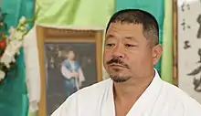 Hitohiro Saito (斎藤 仁弘 Saitō Hitohiro, born 12 February 1957 in Iwama) is an aikido instructor and founding headmaster of Iwama Shin-Shin Aiki Shuren-kai.[1] Hitohiro is the son of Morihiro Saito. At age seven,[2] he started to learn aikido from Morihei Ueshiba, the founder of aikido, who cared for him as a grandson.. After Ueshiba died in 1969, he continued his practice with his father. The younger Saito became an official instructor of the Iwama dojo in 1986 and remained so until 2004 when he separated from the Aikikai organization and formed his own group. Since 2009 he is also identified as Hitohira (仁平) Saito.[3]