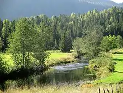 Hjartdøla is a river in Hjartdal municipality in Vestfold og Telemark, Norway. The 26-kilometre (16 mi) long river is part of the Skien watershed. The river is formed at the confluence of the river Bjordøla and some smaller rivers coming from the lakes Skjesvatnet and Breidvatnet, about 5 kilometres (3.1 mi) north of the village of Hjartdal. From here, it runs through the village of Hjartdal, then through the lake Hjartsjåvatnet, and through the village of Sauland. At Sauland, the river meets the river Skogsåa and after this confluence, the two rivers form the river Heddøla which then continues on to Heddal and the lake Heddalsvatnet.[1][2]