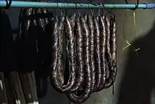 Hmong sausage (Hmong: nyhuv ntxwm hmoob[2]) is a long thick pork sausage from Hmong culture seasoned with herbs like lemongrass and Thai chili pepper. The sausage is popular during Hmong New Year celebrations. The exact recipe varies depending on factors such as clan and individual immigration background.