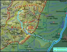 The Hochwald is a hill ridge, up to 508 metres high, in the North Vosges in the French département of Bas-Rhin near Wissembourg (German: Weißenburg). Topographically it represents the northernmost part of the Vosges mountains. To the north is the valley of the Lauter, which is both the border between France and Germany (state of Rhineland-Palatinate) and also the boundary between the (North) Vosges and the Palatine Forest (specifically the Mundat Forest).
